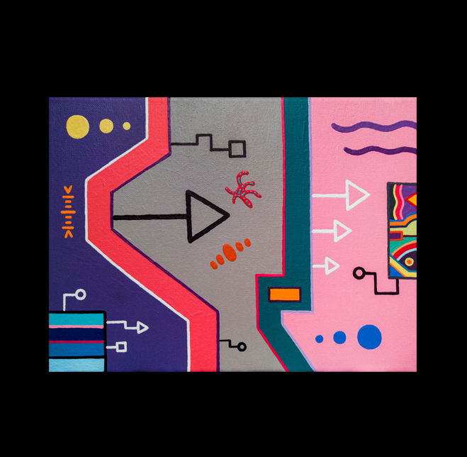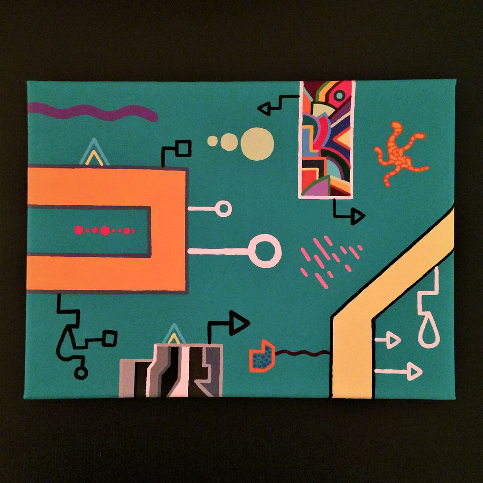 This style of my art is inspired by being a kid in the 80's. Bright funky designs were popular in 80's fashion and design. I find inspiration in things like side scrolling video games, Vuarnet shirts, Swatch watches and Lisa Frank school supplies. I try to approach each piece as if I'm creating a level for a video game. Each level is different, but also clearly from the same game. I hope you dig them!