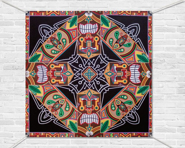 "TIKI GOD MANDALA" - 48" x 48" avec oeillets