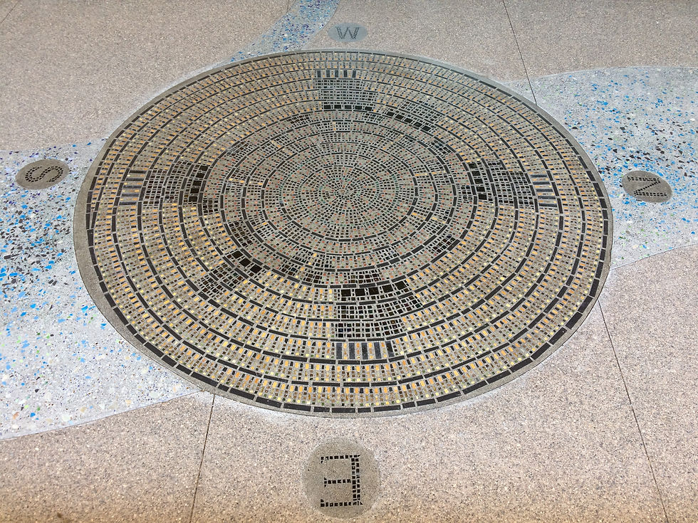 At the Corn Creek visitors center we walked across this big Mandala made of little tiles. It was about 20 feet across. While walking across it, it was hard to tell what the design was, but then I climbed up onto a bench to get a better view, and it became clear - a turtle! So awesome :)